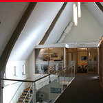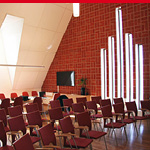 | Befintlig kyrka som byggs om till ett modernt kontor. Den stora volymen i kyrkorummet gav goda möjligheter till intressanta belysningslösningar, men satte oss också på prov då vi ville ha möjlighet till ganska hög belysningsnivå vid några tillfällen utan att för den delen låta armaturerna bli för dominanta. Kontoret försågs med all modern teknik såsom passagesystem, inbrottslarm, CCTV, porttelefon etc. Entreprenaden pågick under 2012 och projektkostnaden var 20 milj kr. |  | ||